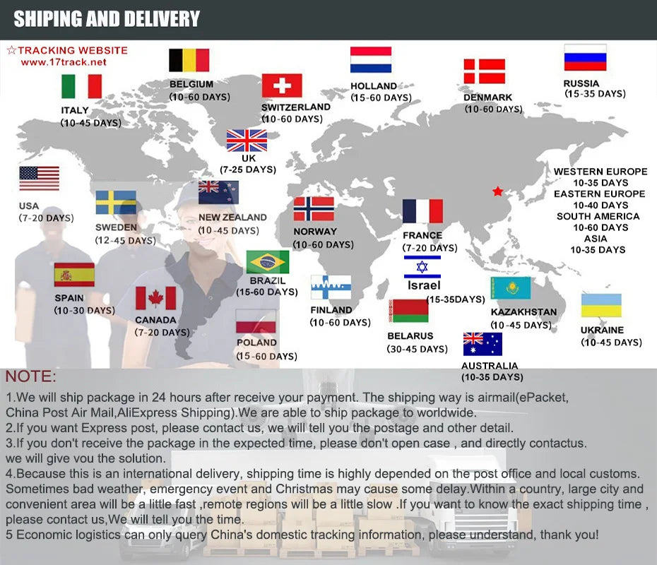 Under normal circumstances, reach most of the countries need 10-15 work days,delivery time depends on destination and other factors. It may take up to 10-15 work days, according to the different Customs policy of every country and region .