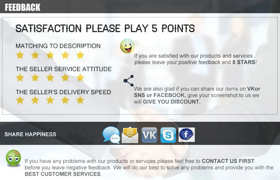 If you are satisfied with our products and services please leave us 5-star praise, your recognition for us, this is very important.